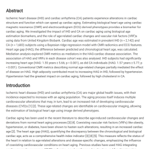 Ischemic heart disease and cardiac arrhythmia are associated with increased cardiac aging