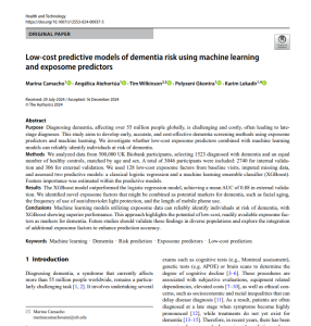 Low-cost predictive models of dementia risk using machine learning and exposome predictors